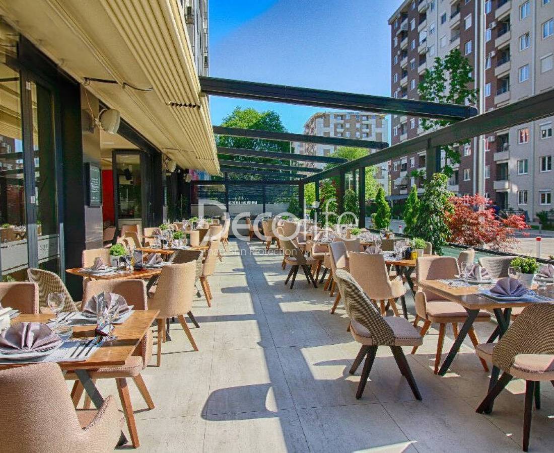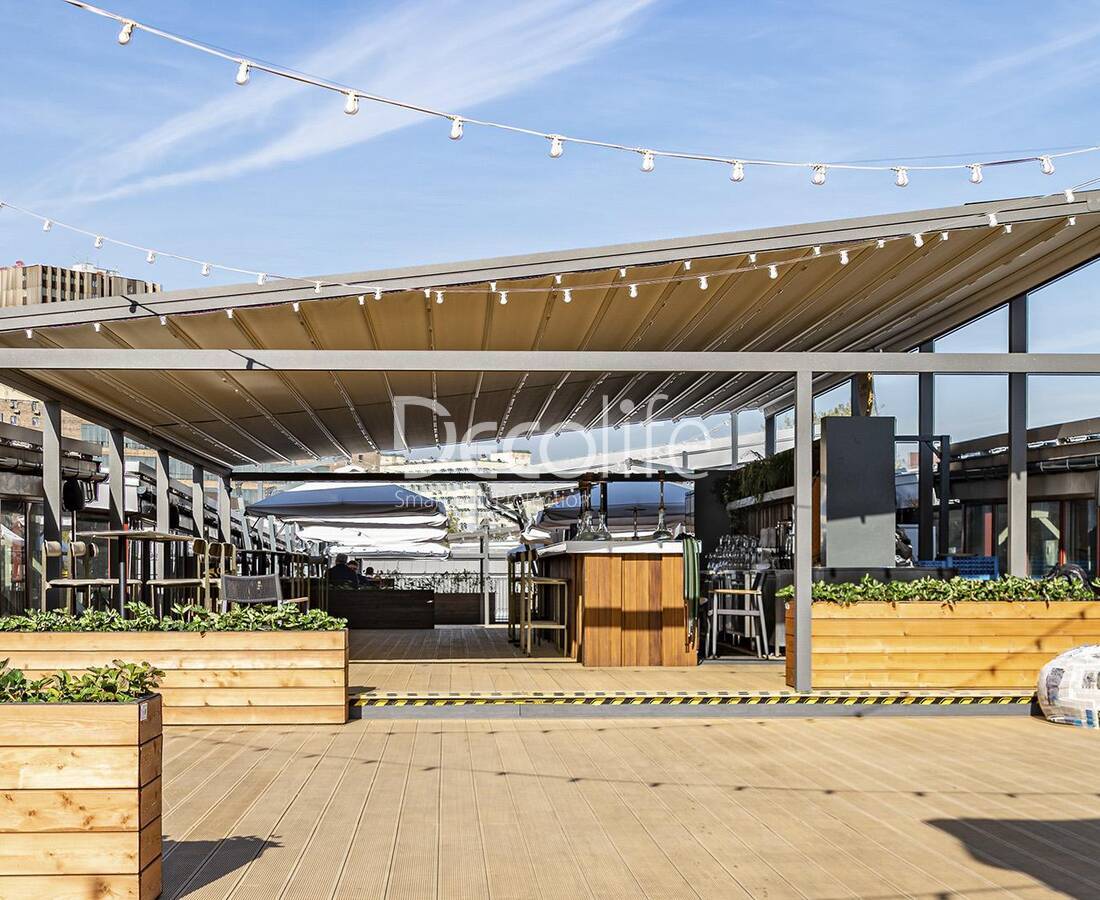 Перголы тентовые Decolife Basic & Pro New, реализовано партнером ООО "Европейские Солнцезащитные Системы" - г. Зеленоградск,"Grand Hotel Royal Lions"