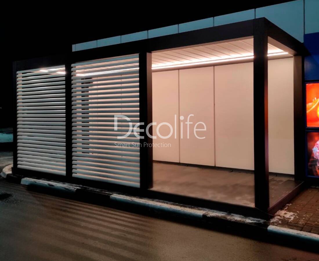 Пергола Decolife В500-25П + фасадные жалюзи FZ-44 - Беларусь, АЗС Газпромнефть